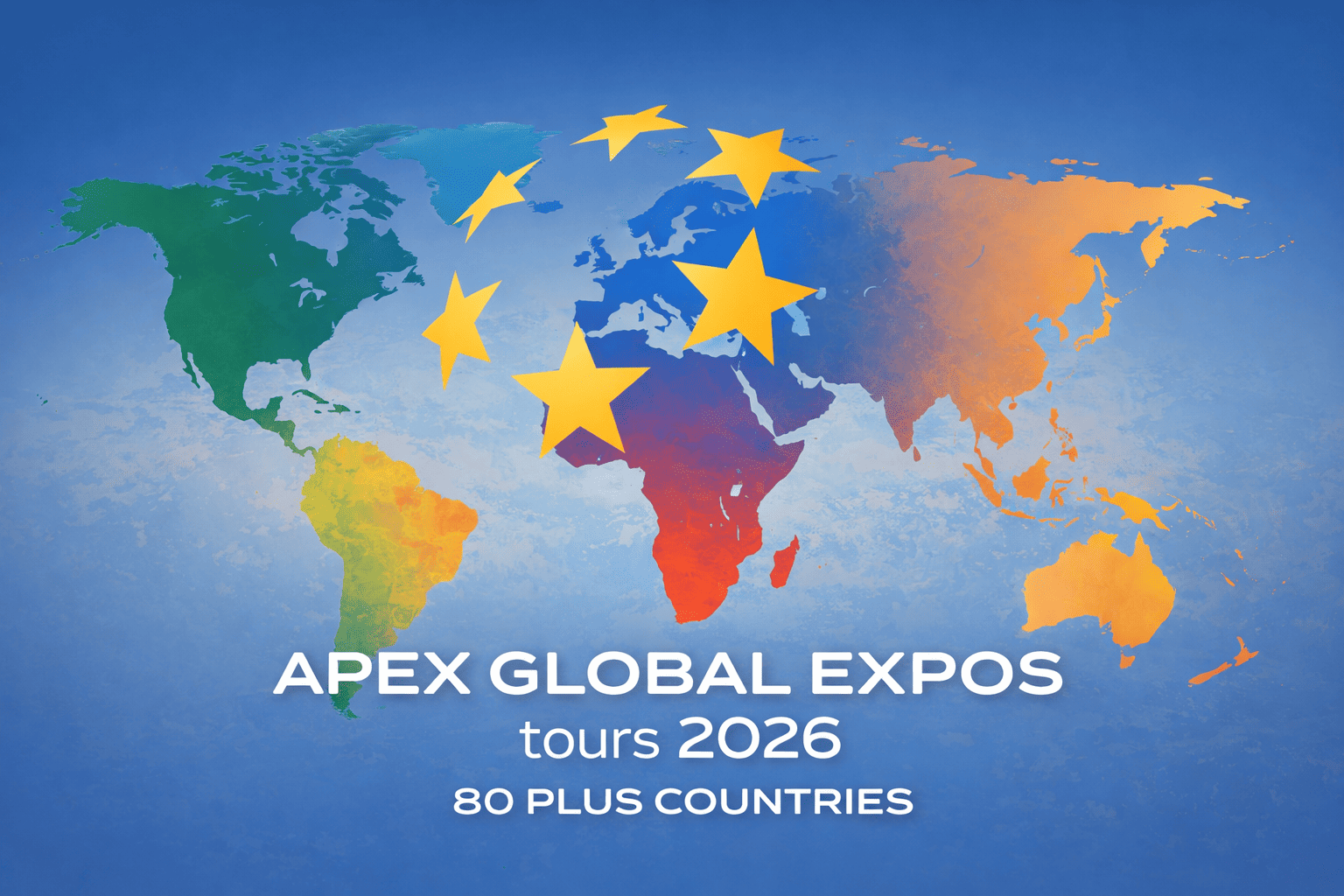 The Apex Masters World Tour travels through global centers of progress — uniting Left Brain and Right Brain thinkers across continents. A trusted community of innovators, creators, and visionaries who think beyond fear, beyond borders, and build futures together through the Apex Business Club.